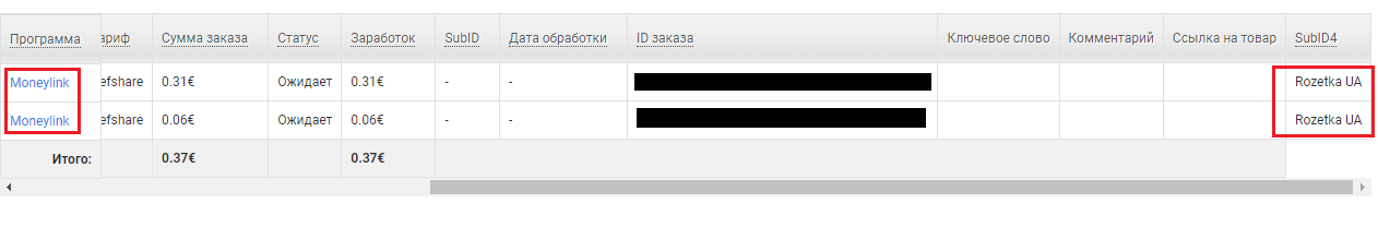 В конце августа, заметил, что стали появляться в статистике данные по переходам на сайт оффера Rozetka UA, с тех сайтов, где был установлен скрипт Moneylink. Скрипт Moneylink обрабатывал и присваивал партнерские идентификаторы прямым ссылкам на сайт оффера Rozetka UA и учитывал их в статистике, зачислял вознаграждение за заказ и корректно открывал ссылки. Скрины есть выше.